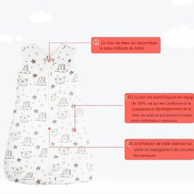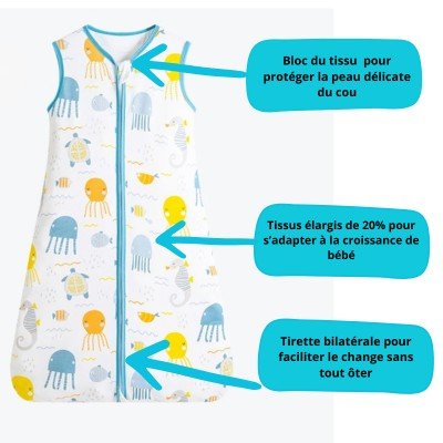 Pour les nuits chaudes, optez pour nos turbulettes d'été sans manches. Elles sont parfaites pour garder bébé au frais tout en assurant sa sécurité pendant son sommeil. Découvrez par exemple :
